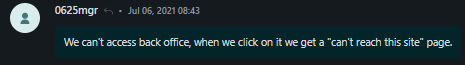 Use Case: A store reaches out saying they’re unable to access Backoffice or link is showing “site can’t be reached”.