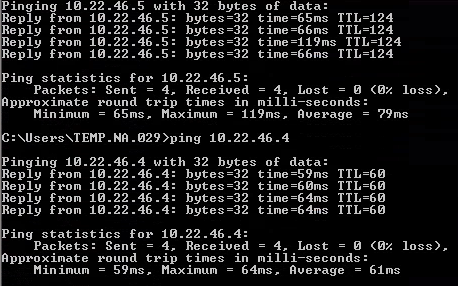 - Run pings in frasadmin Command Prompt:
