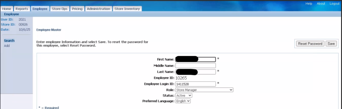 (4 = last quarter of the year - number will change depending on the quarter of the year) - enter employee ID; select reset password.