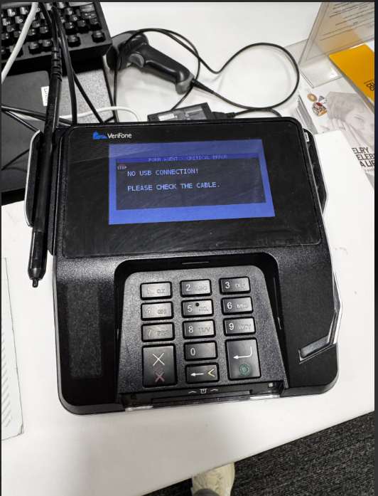 Stores report that the pin pad is not working, not recognized, or showing a “USB not found” error. The issue is often caused by improper connections, faulty power cables, or incorrect USB port assignments—especially on Lenovo registers, which require the pin pad to be connected to a specific USB port.