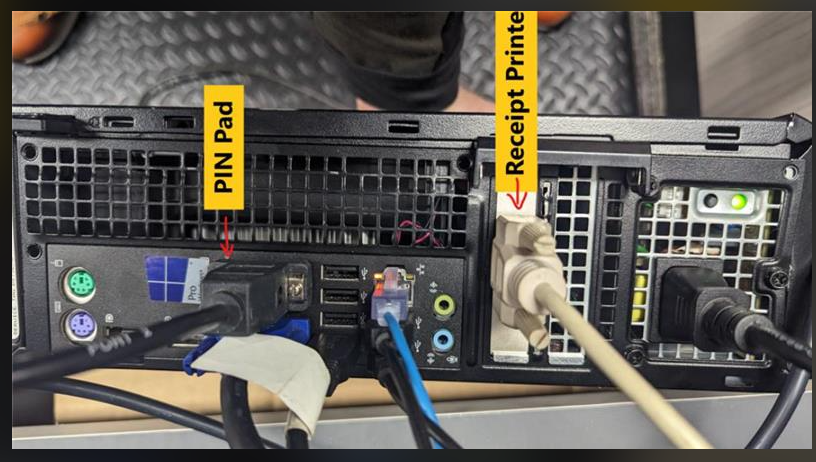 - Confirm with the store that the pin pad USB is connected to the correct port.